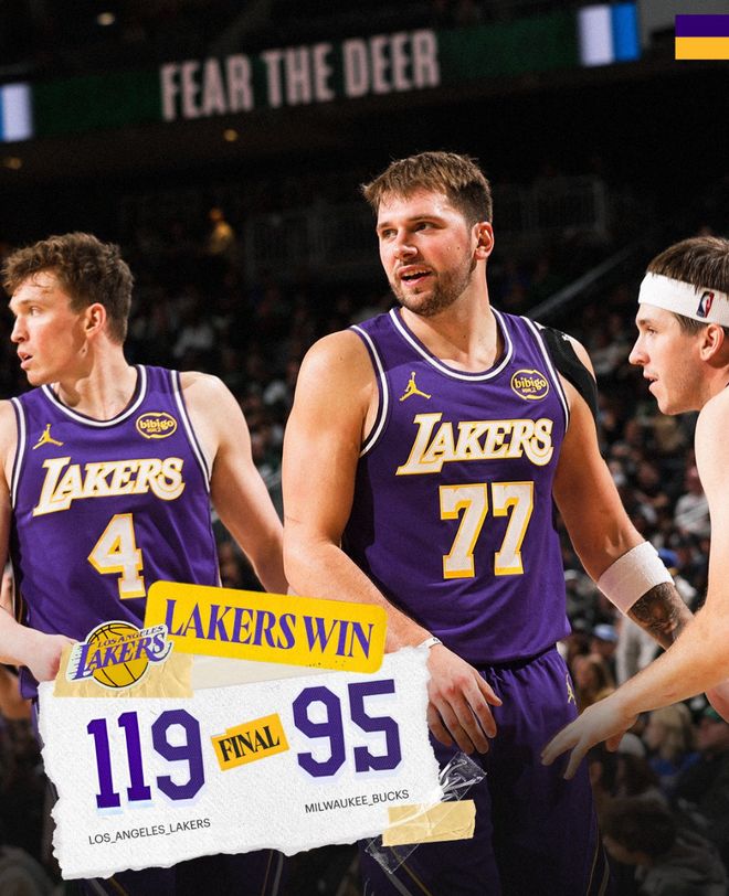 湖人背靠背第二场也赢了,还是119-95大胜雄鹿,这场比赛湖人一度领先雄鹿达到31分,虽然第三节开场雄鹿一波15-0疯狂追分,但东契奇校正手感后湖人还是压制雄鹿,最终东契奇41+9碾碎扬尼斯32+10。