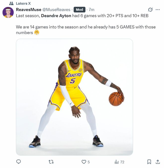 湖媒写道:上赛季艾顿只有6场20+10,而本赛季他14场比赛已经完成5次20+10,这足以说明艾顿并不是没有能力而是被开拓者给拖累了。